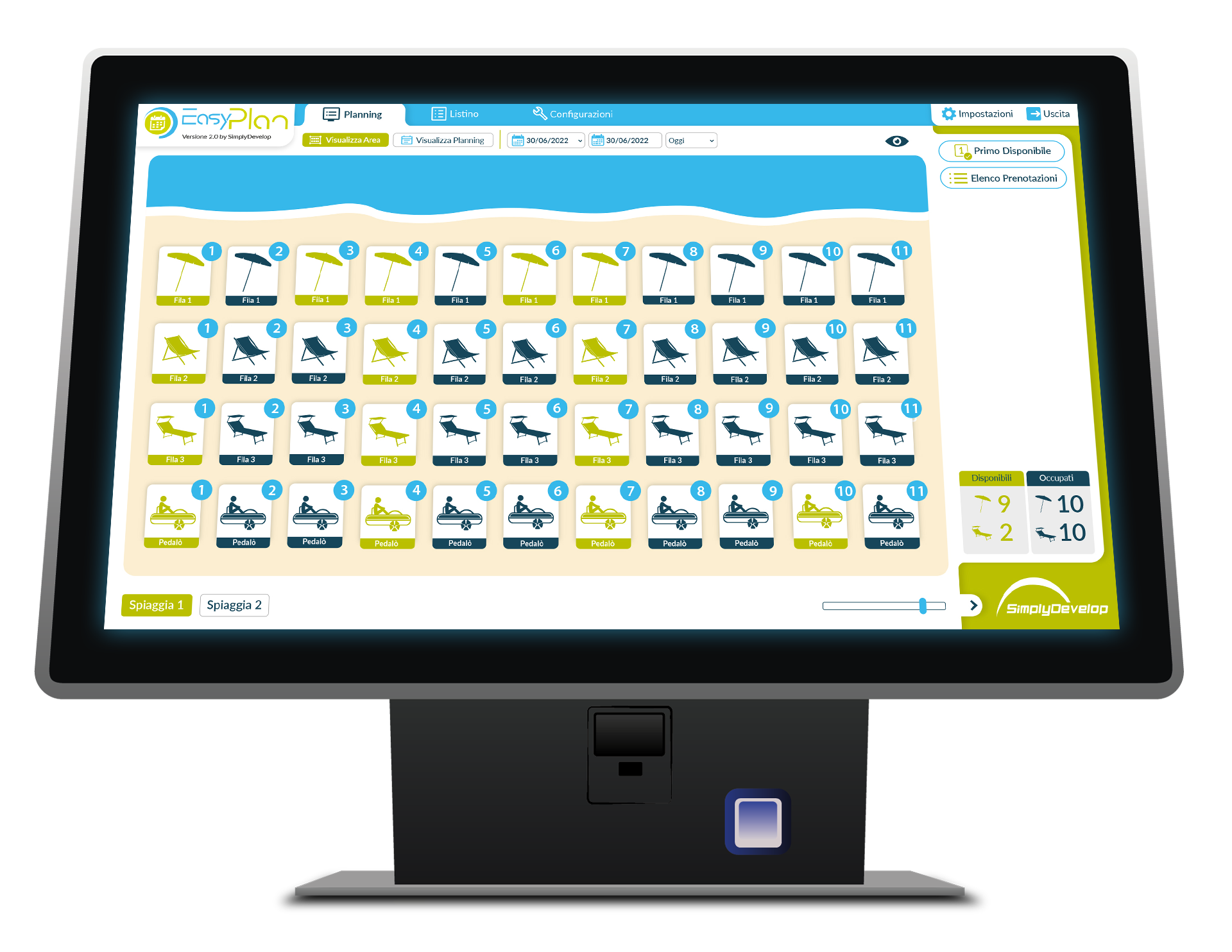 Interfaccia adattata per stabilimenti balneare e lidi.