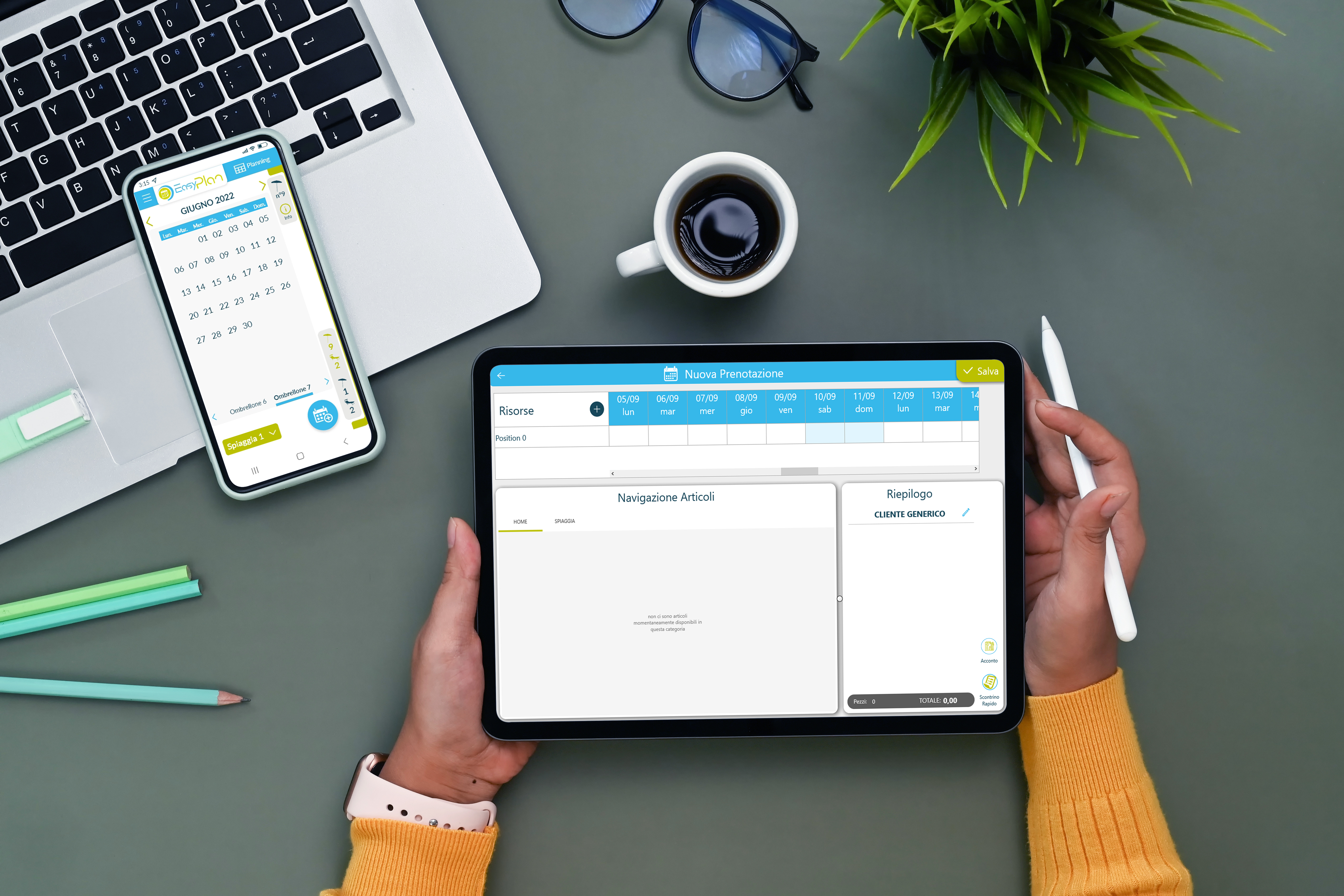 EasyPlan è il software per la gestione di prenotazione di servizi, studiato per ottimizzare il flusso dell’attività lavorativa a partire dalla prenotazione fino al pagamento dei servizi usufruiti dal cliente. Idoneo per la gestione di stabilimenti balneari, b&b, piccoli hotel, centri estetici e parrucchieri.